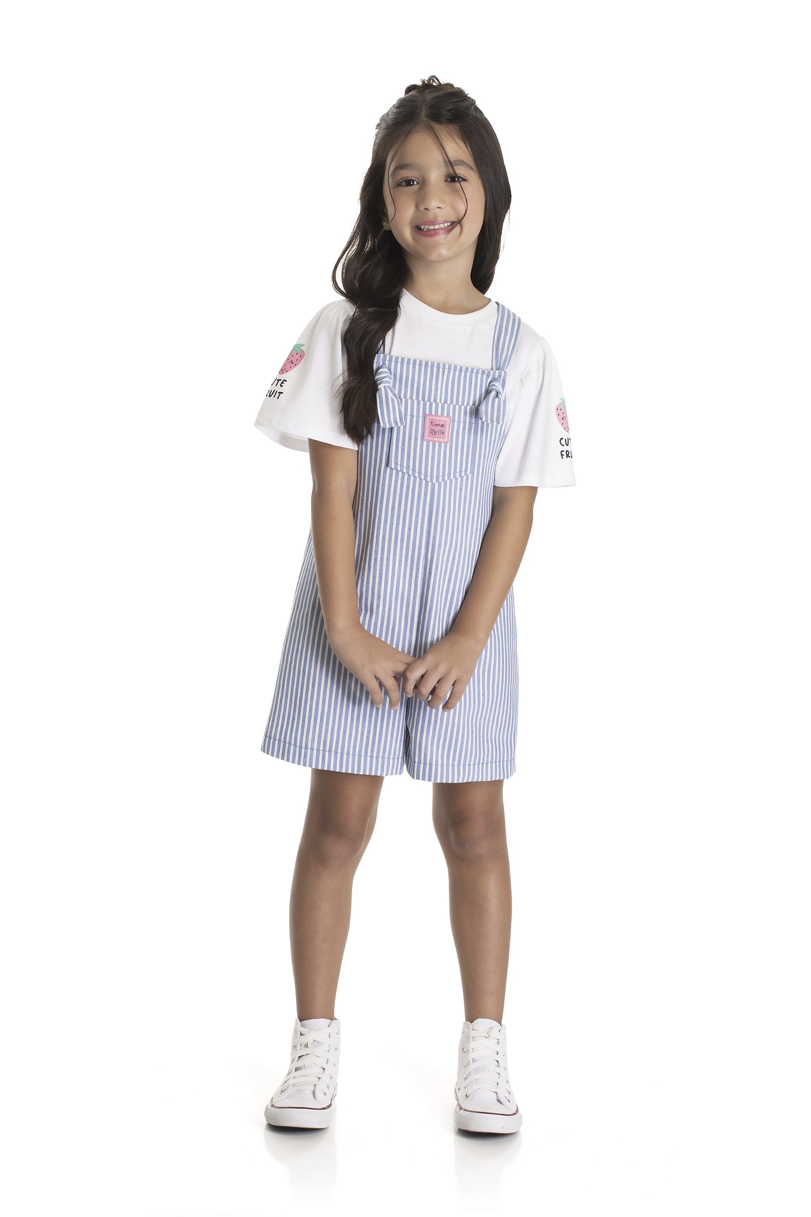 Peça Moderna em listras que combina estilo e conforto para meninas. A jardineira possui ajuste prático nas alças, feita em tecido com toque de linho que garante leveza, e vem acompanhada de blusa 100% algodão com manga em babados e estampa divertida. Perfeita para crianças que buscam liberdade para brincar com charme e praticidade. Ideal para diversas ocasiões, a roupa alia qualidade e conforto em cores rosa (tamanhos 8 e 10) e azul (tamanhos 4 e 6).