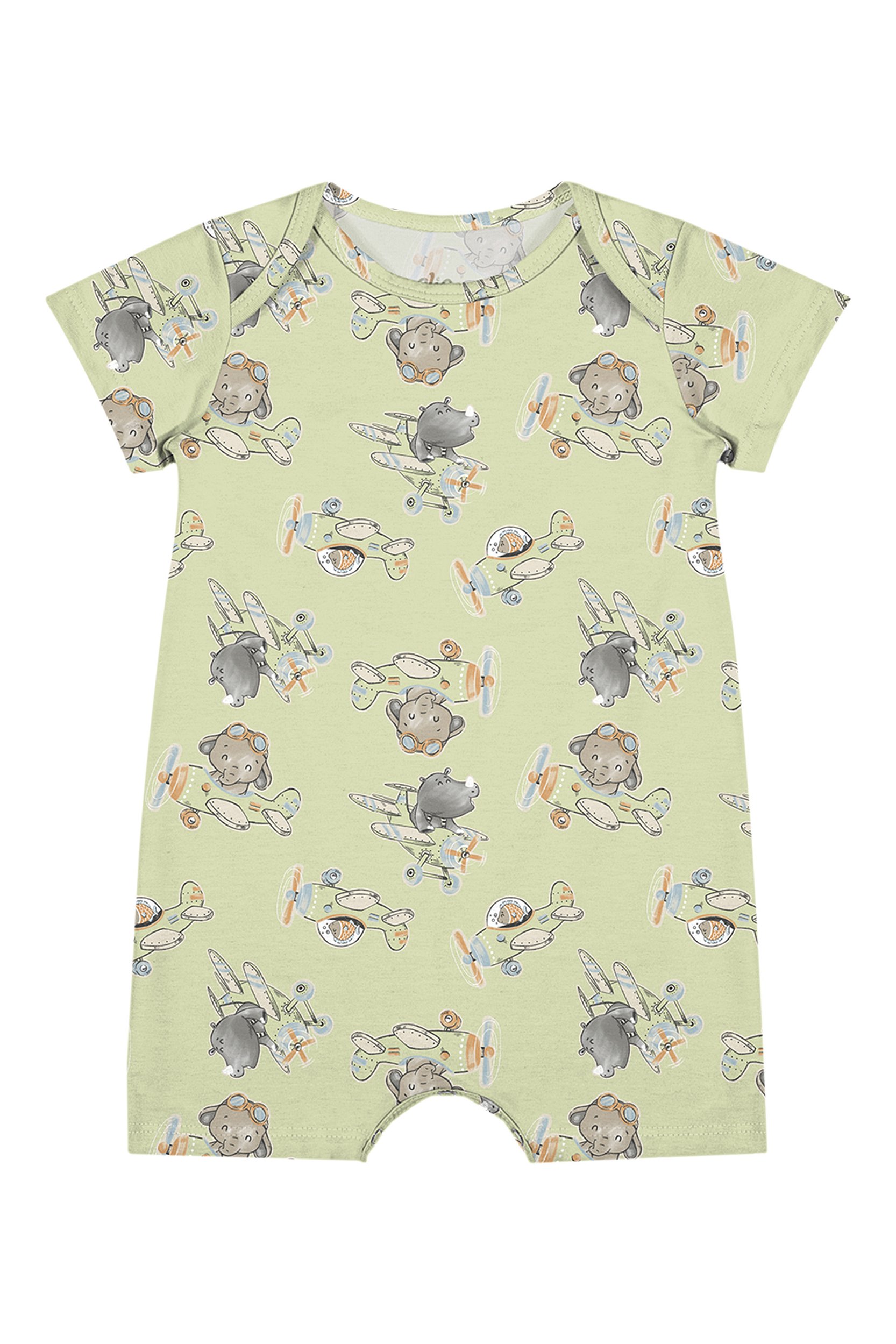 Com estampa lúdica de ursinho aviador, ele traz um charme especial que conquista à primeira vista. O tecido leve e respirável proporciona liberdade de movimento e muito conforto, mesmo nos dias mais quentes.
