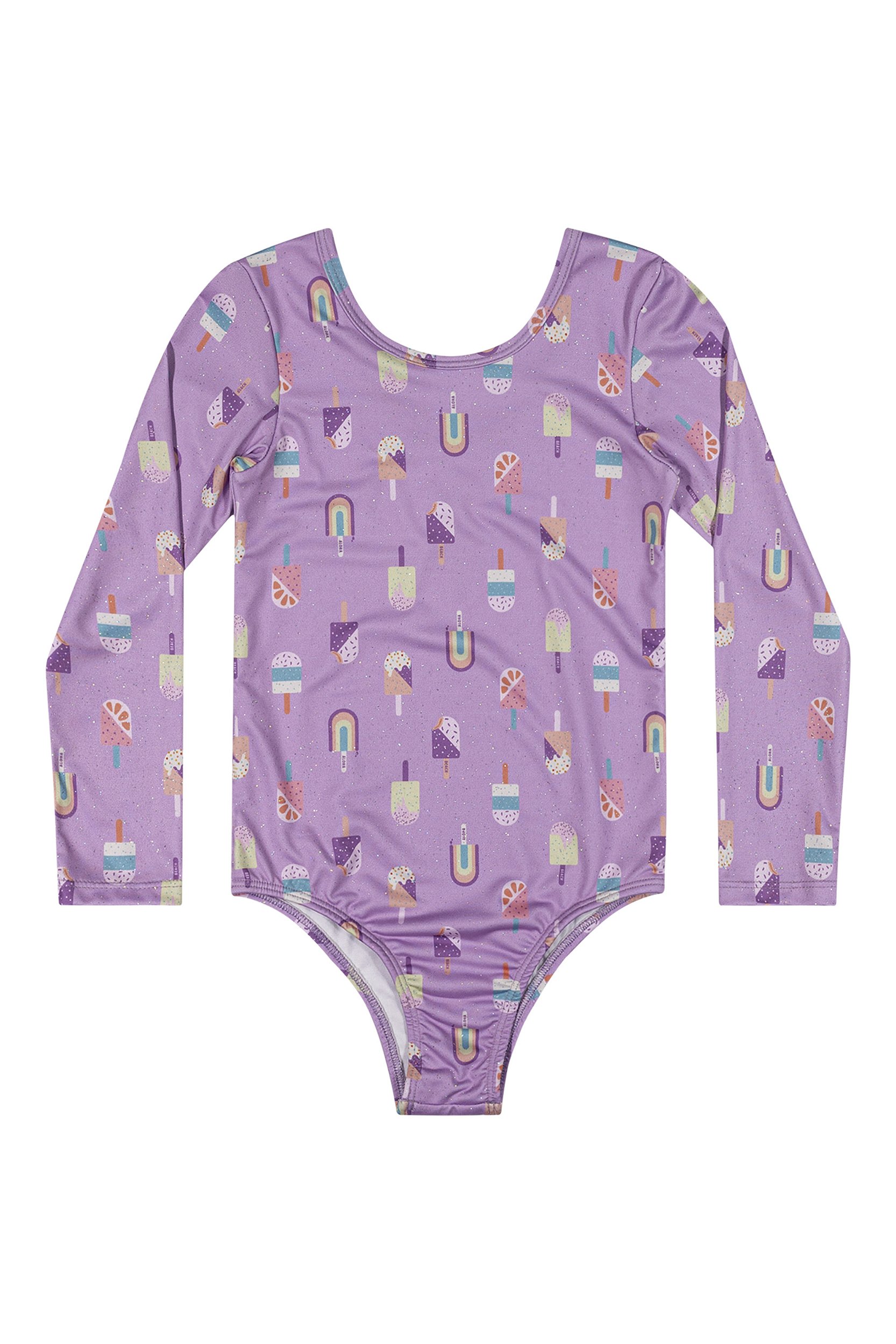 Esse maiô infantil é perfeito para os dias de sol. Com estampa supercolorida de sorvetinhos e arco-íris, ele ainda conta com um detalhe especial: um leve brilho que deixa tudo mais encantador!