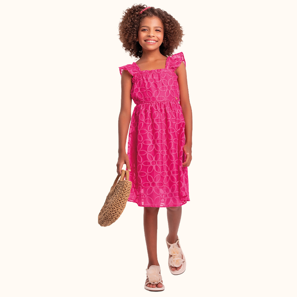 O Vestido Lia infantil é confeccionado em tecido delicado com bordados que realçam a beleza da peça