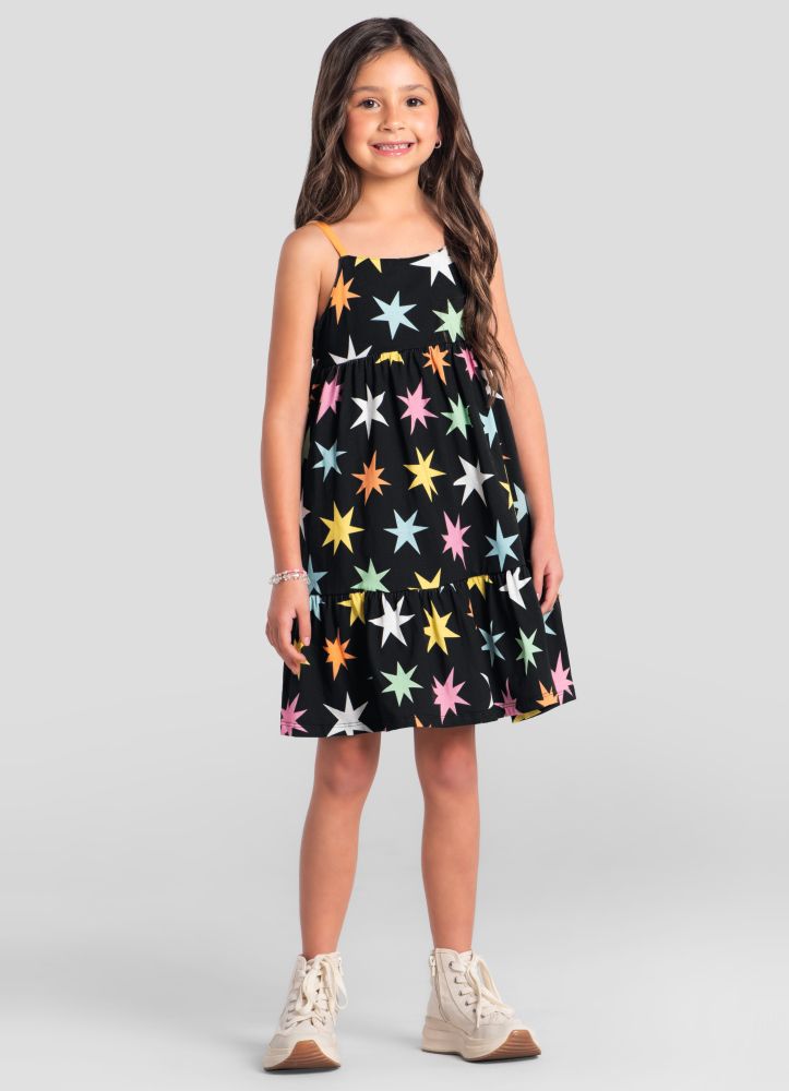 Colorido, leve e cheio de charme! O Vestido Malha Estrela é feito em malha fresquinha 100% algodão, perfeita para acompanhar as crianças nos dias de muita brincadeira. Com estampa alegre de estrelas e modelagem soltinha, garante conforto e liberdade de movimentos o dia todo.